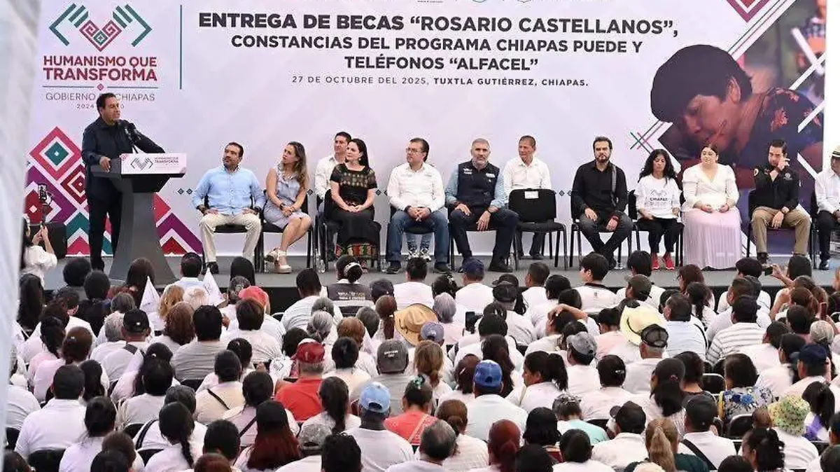 Durante la entrega de becas de alfabetización Rosario Castellanos, constancias del programa Chiapas Puede y celulares Alfacel, el gobernador Eduardo Ramírez Aguilar destacó que uno de los propósitos del gobierno de la Nueva ERA es fortalecer la educación. Enfatizó que se trabaja en unidad para que más personas aprendan a leer y escribir, con la meta de alzar la bandera blanca como símbolo de que Chiapas ha vencido en la lucha contra la ignorancia.