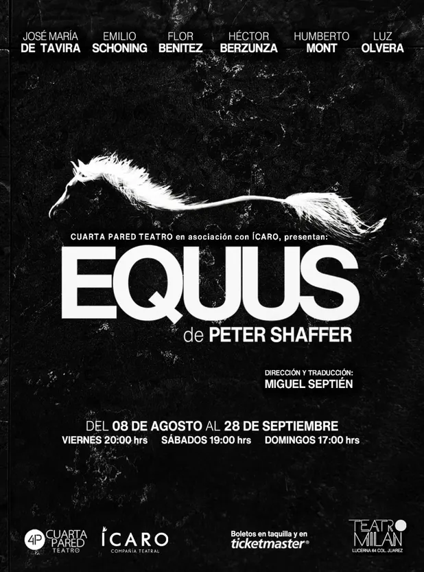 En México, Equus se presenta con una producción que respeta la crudeza y el simbolismo del texto original, pero también introduce un lenguaje escénico que busca acercar la obra a públicos actuales. La trama gira en torno a Alan Strang, un joven de 17 años que comete un acto de violencia contra varios caballos, y el doctor Martin Dysart, el psiquiatra encargado de indagar en su mente para comprender las motivaciones detrás de ese comportamiento. A través de este proceso, la obra cuestiona los límites de la normalidad, el deseo, la religión y el precio de la racionalidad frente a la pasión desbordada.
