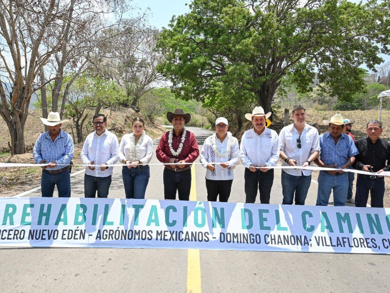 El gobernador Eduardo Ramírez Aguilar inauguró este 15 de abril, la rehabilitación del camino Crucero Nuevo Edén-Agrónomos Mexicanos-Domingo Chanona, en el municipio de Villaflores, una obra que representó una inversión superior a 19 millones de pesos y beneficiará a casi 20 mil habitantes. Destacó que la modernización de esta vía fortalecerá la conectividad y dinamizará las actividades sociales, comerciales y productivas entre la región Frailesca y otras zonas de Chiapas.