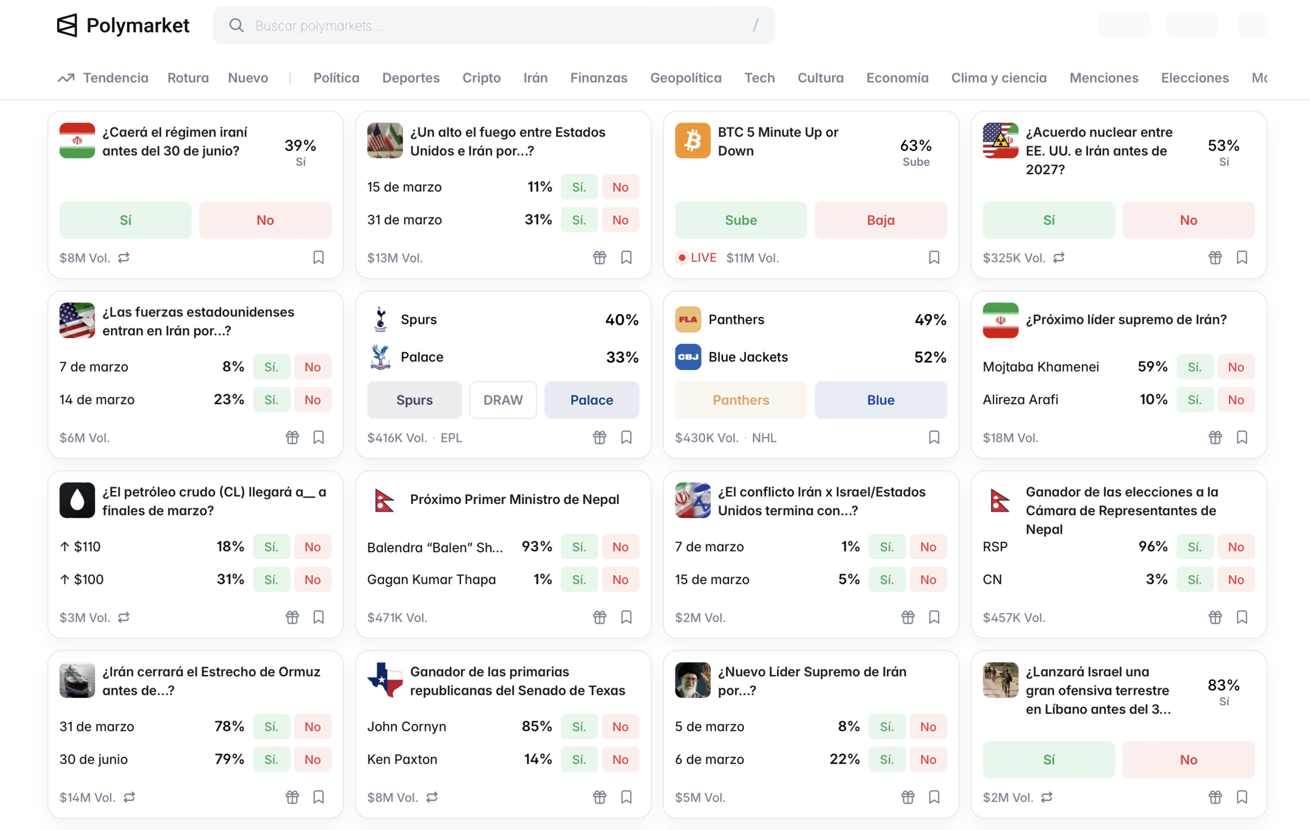 La dinámica es sencilla. Cada evento se presenta como una pregunta: “¿Habrá un ataque militar de Estados Unidos contra Irán antes de cierta fecha?” o “¿Se firmará un alto al fuego en Ucrania este año?”. Los usuarios compran contratos de “sí” o “no” usando criptomonedas; si el resultado se cumple, quienes apostaron correctamente ganan dinero. En teoría, el sistema funciona como una especie de bolsa de probabilidades colectivas que intenta anticipar acontecimientos globales. La plataforma incluso sostiene que estos mercados ayudan a entender mejor situaciones complejas cuando la información es confusa o limitada.