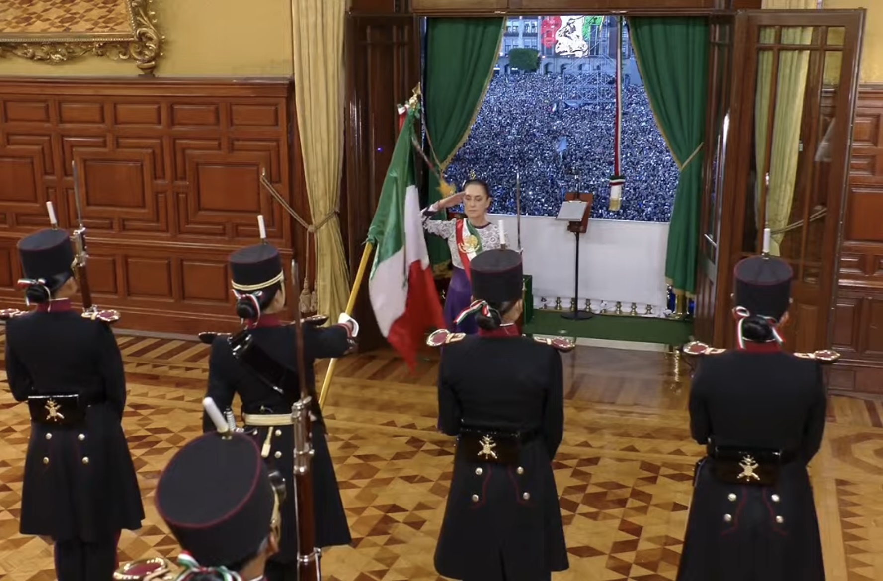 En lo protocolario y en lo simbólico también hubo novedades: la banda presidencial que portó la presidenta para la ceremonia fue confeccionada por mujeres militares de las Fábricas de Vestuario y Equipo de la Secretaría de la Defensa Nacional; se difundió el proceso de bordado (con hilos de oro y plata y el escudo bordado a mano) y Sheinbaum reconoció públicamente el trabajo de esas mujeres, subrayando el valor del oficio detrás del símbolo. Además, la bandera y la entrega de insignias tuvieron participación de cadetes y mujeres uniformadas en distintos momentos de la ceremonia, lo que reforzó el gesto de paridad en los honores.