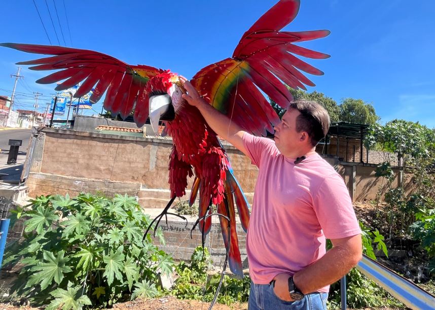 Sin embargo, indica que este año arrancó a desarrollar este tipo de esculturas luego de que un empresario le solicitara “una hormiguita” y una “abejita”, hecha de piedras y cabillas, para adornar la casa de su mamá. Posteriormente, dijo, decidió crear una iguana a partir de neumáticos, a la que bautizó como ‘la iguana mollejúa’ (adjetivo coloquial para describir algo grande), porque, señala, se dio cuenta de la versatilidad de este material. También hizo una guacamaya con láminas de zinc y el ‘Transformer’ -que evoca a la película homónima- con piezas de reciclaje de autos, motos y bicicletas.